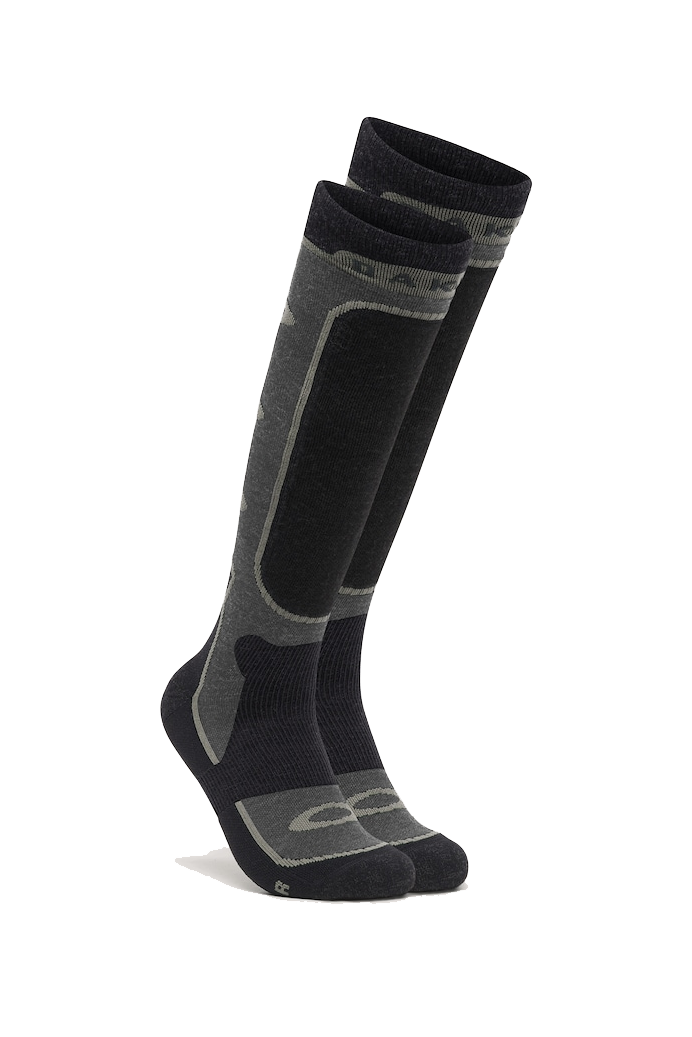 Skarpety Oakley Patrol Sock Dark Grey /2026 to techniczne, męskie skarpety o długości Over The Calf, zaprojektowane z myślą o całodziennym komforcie w wymagających warunkach. Wysokogatunkowa mieszanka wełny merino oraz wzmocnienia w kluczowych strefach zapewniają pewne wsparcie stopy i goleni.