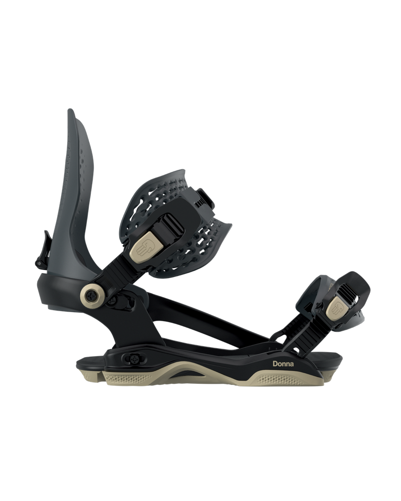 Donna AW to wszechstronne wiązania all-mountain dla kobiet, zaprojektowane z wykorzystaniem konstrukcji AsymWrap™ Chassis. Mniejszy Quarterback Highback został dopasowany do damskich rozmiarów butów, zapewniając precyzyjne dopasowanie oraz idealną równowagę między elastycznością boczną a responsywnością od palców do pięty. Dostosuj swoją jazdę dzięki regulowanemu AsymWrap™ Heelcup, trzem pozycjom FootBed oraz możliwości obracania highbacka dla lepszej kontroli przy skrętach na pięcie. Ciesz się maksymalnym komfortem i wszechstronnością podczas wszystkich górskich przygód.